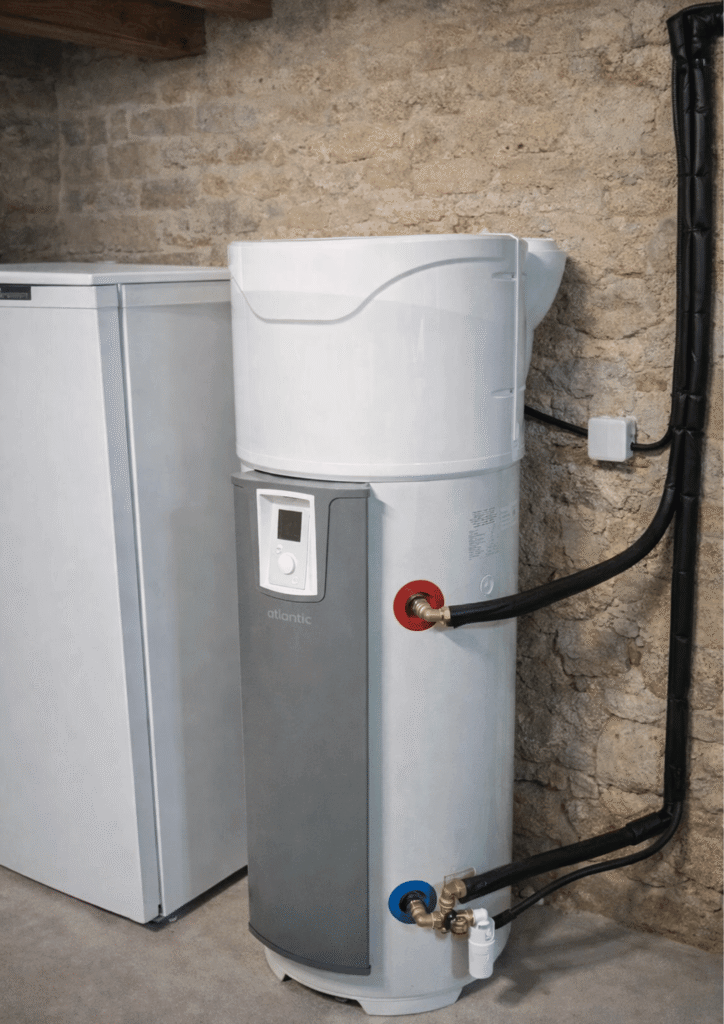 Un ballon thermodynamique monobloc assure la production d’eau chaude sanitaire grâce à une pompe à chaleur intégrée au ballon. Il capture les calories de l’air pour chauffer l’eau avec moins d’électricité. Solution compacte et autonome, il se pose simplement dans un local ventilé, adapté aux logements avec buanderie ou garage.